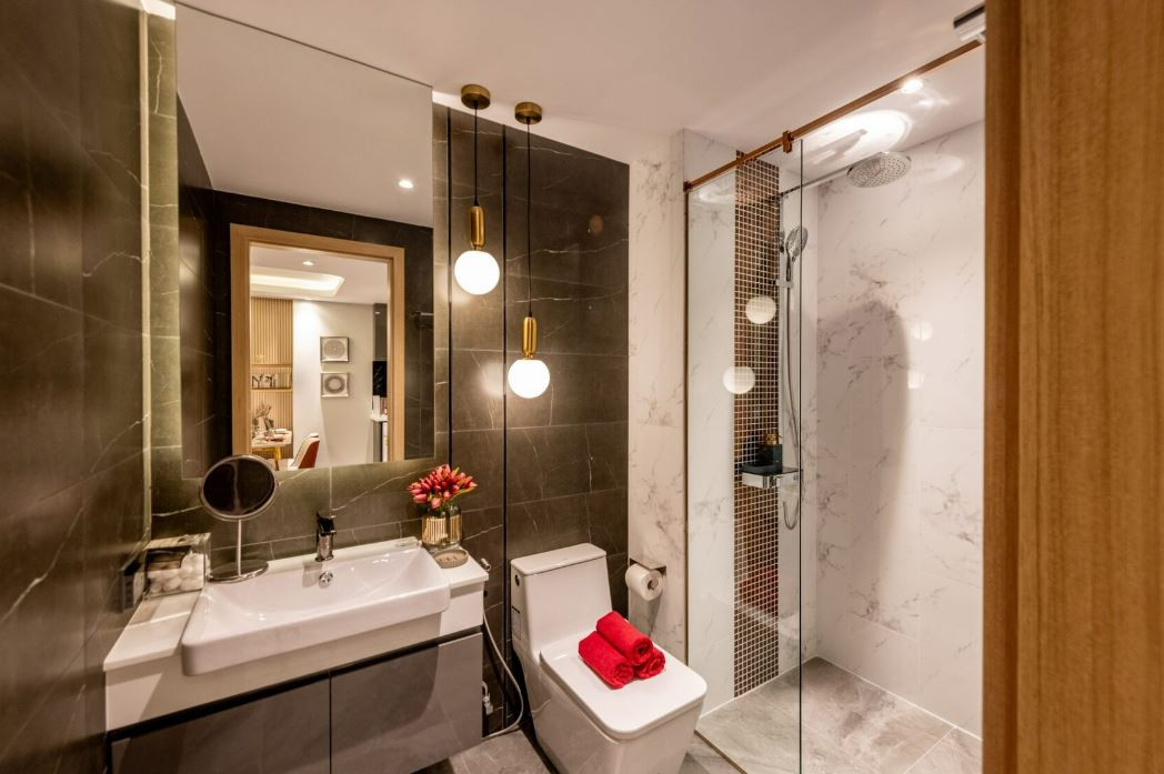Apartments are designed with the market in mind. Studios from around 25 sqm, one- and two-bedroom units going up to about 65-68 sqm. Not oversized. But well thought through. Layouts are practical, with clear zoning and good natural light. Most units come fully furnished: built-in furniture, kitchen equipment, air conditioning. You walk in, and it’s ready.
